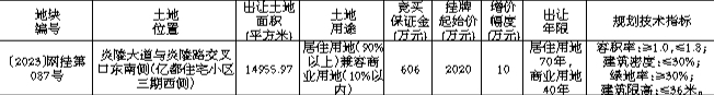一、本次网上挂牌出让地块的基本情况和规划技术指标