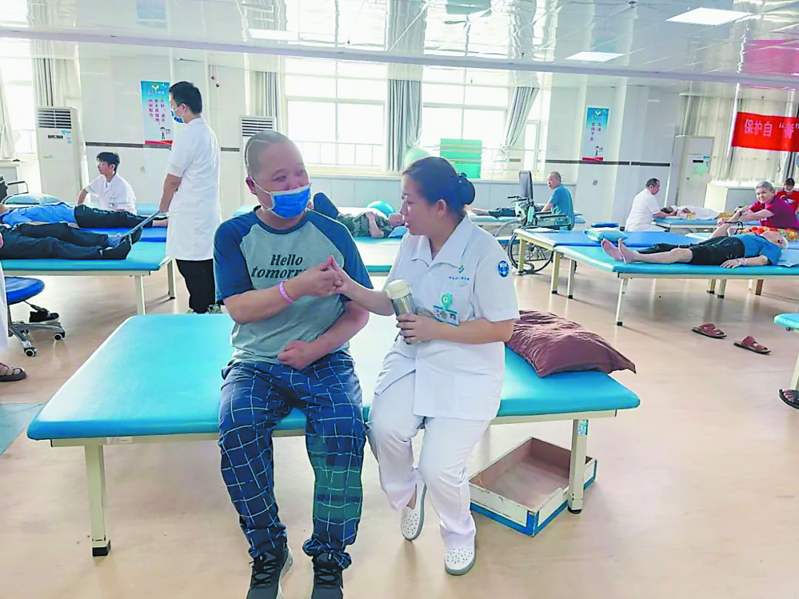 一个又一个技能的突破让黄师傅看到了生活的希望,也让他和医护人员的关系更近了。
