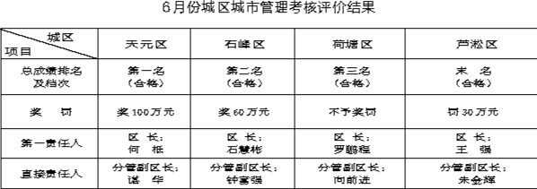 株洲日报讯(全媒体记者/伍靖雯 通讯员/城关) 根据《城区城市管理考核评价办法》,市城市管理委员会办公室发布6月份城市管理考核评价结果。
