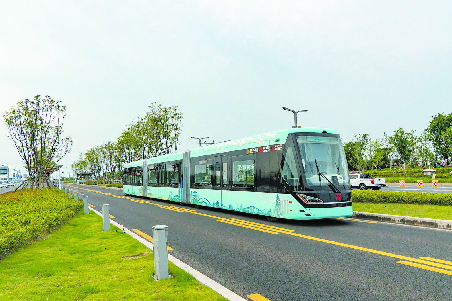 株洲日报讯(全媒体记者/刘芳) 7月25日,由中车株洲电力机车研究所有限公司自主研发、制造,由蜀道集团投资、建设、运营的新一代中车智轨再次亮相成都,在成都东轴线快速公交K7线(区间线)“载客试运行”,为前往东安湖体育馆观看大运会赛事的市民提供“绿色、低碳、环保”出行首选。