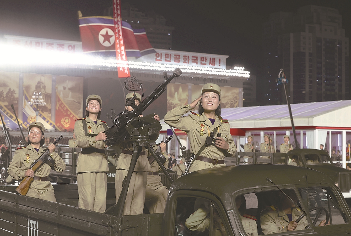 7月27日,方队在朝鲜平壤的阅兵式现场接受检阅。 新华社记者 姚大伟 摄