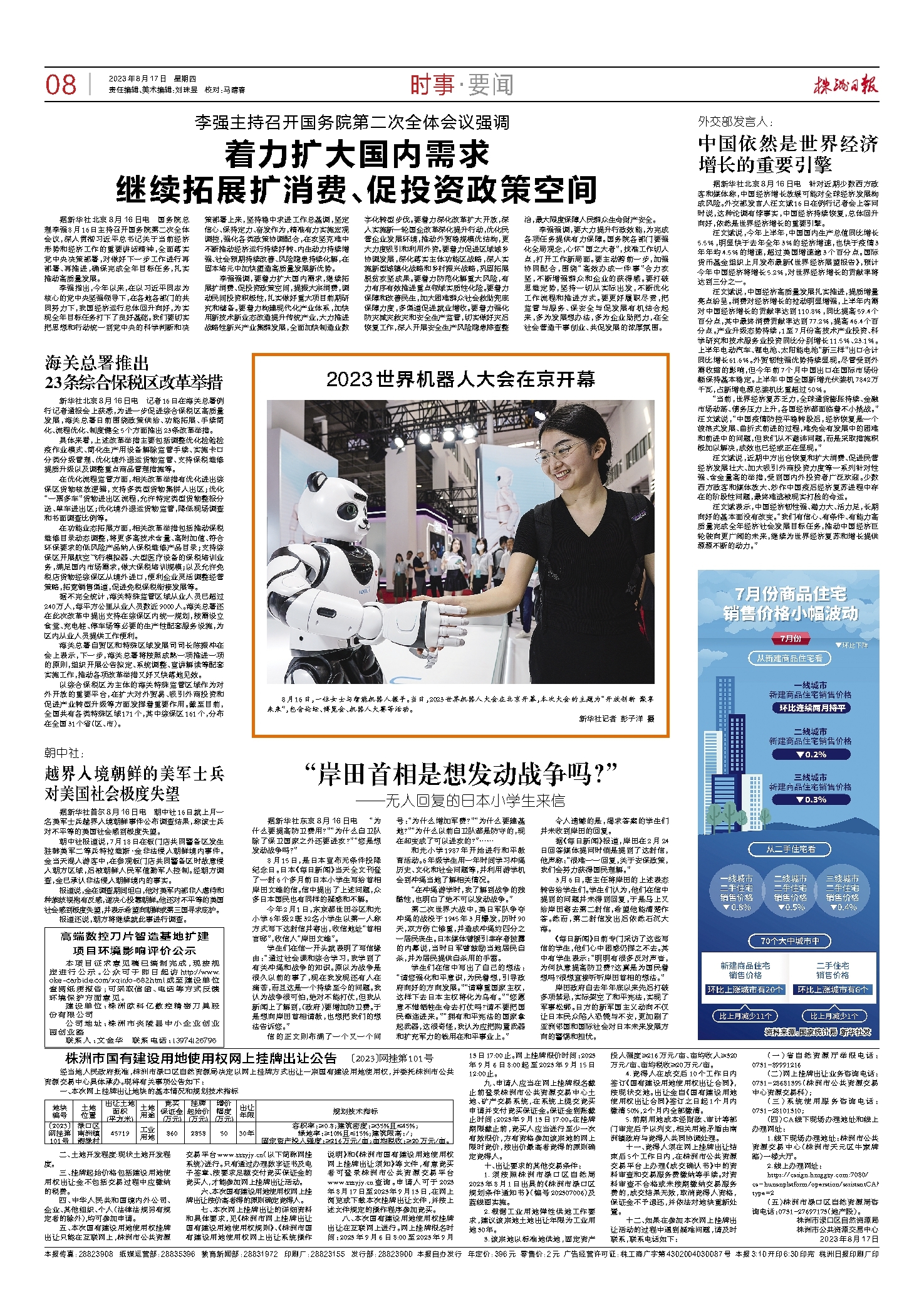 着力扩大国内需求 继续拓展扩消费、促投资政策空间