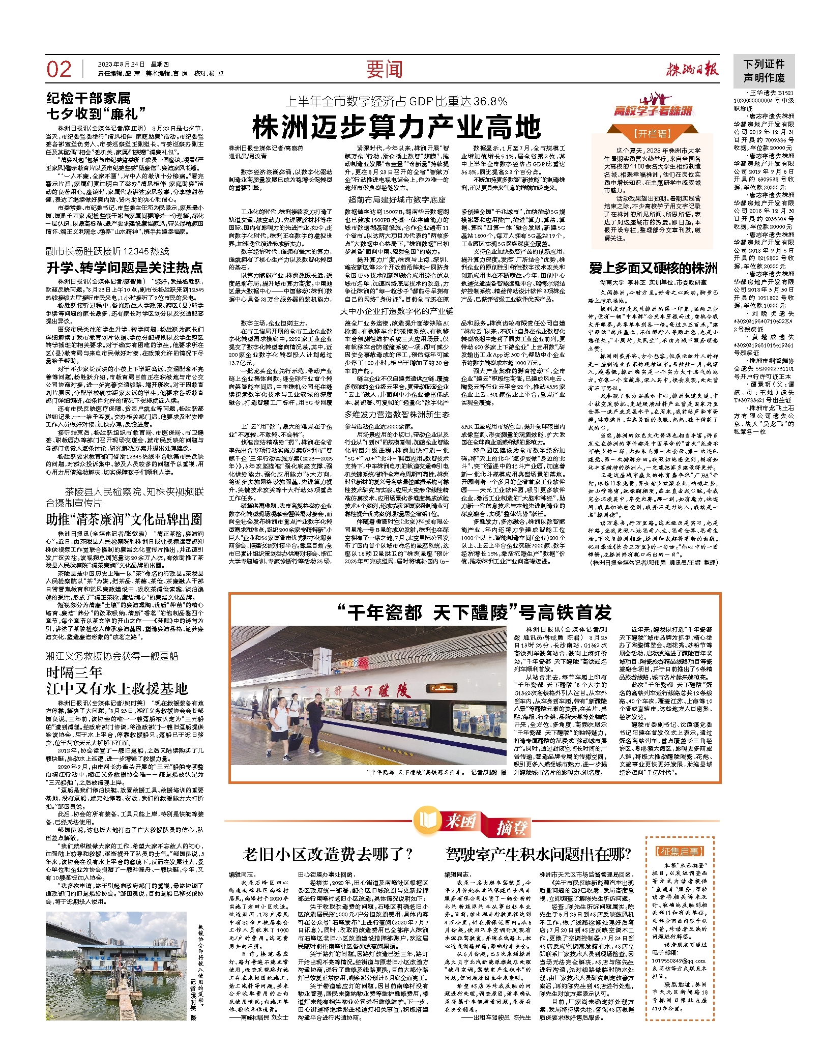 2023年08月24日《株洲日报》