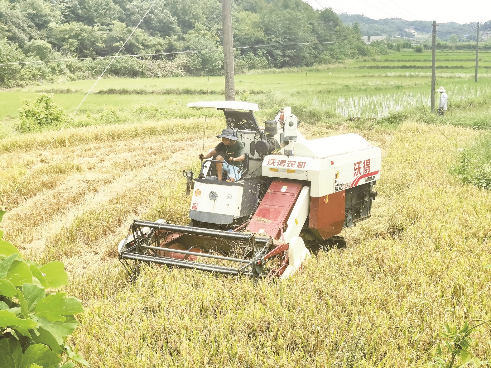 “过去‘双抢’那种一家老小齐上阵,面朝田野背朝天的忙碌场景不再了,取而代之的是收割机、旋耕机、插秧机等往返穿梭于田间。”建龙村党总支书记唐永介绍。