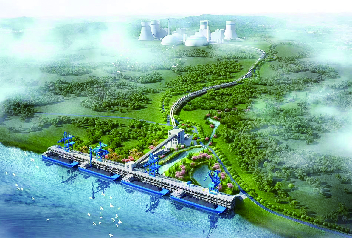大唐华银“退城进郊”2×100万千瓦煤电项目配套码头工程项目效果图。 通讯员/罗钦卿 供图