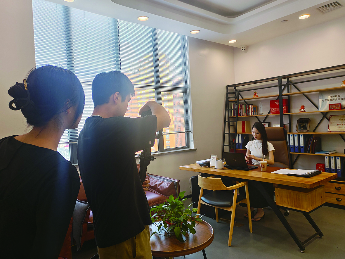 新媒体团队正在为新一批服装拍摄视频。 记者/成姣兰