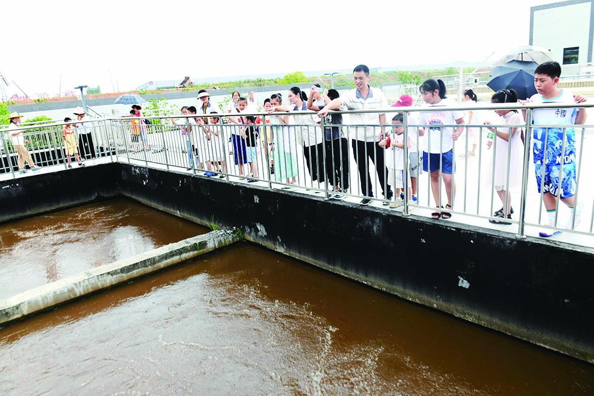 8月15日,首个“全国生态日”当天,30多位小朋友及市民走进金山污水处理厂,了解污水处理工艺流程。工作人员通过现场详细讲解、播放环保动画短片等多种方式,向大家宣传环保知识。