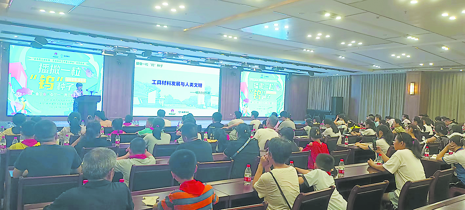 钨,制成钨丝可以带来光明。融入合金则变成硬质合金,可以制作无坚不摧的“工业的牙齿”,继而能上天采掘月球矿物,可入地钻进地壳……参观中,精彩的讲解令在场孩子听得格外入迷。