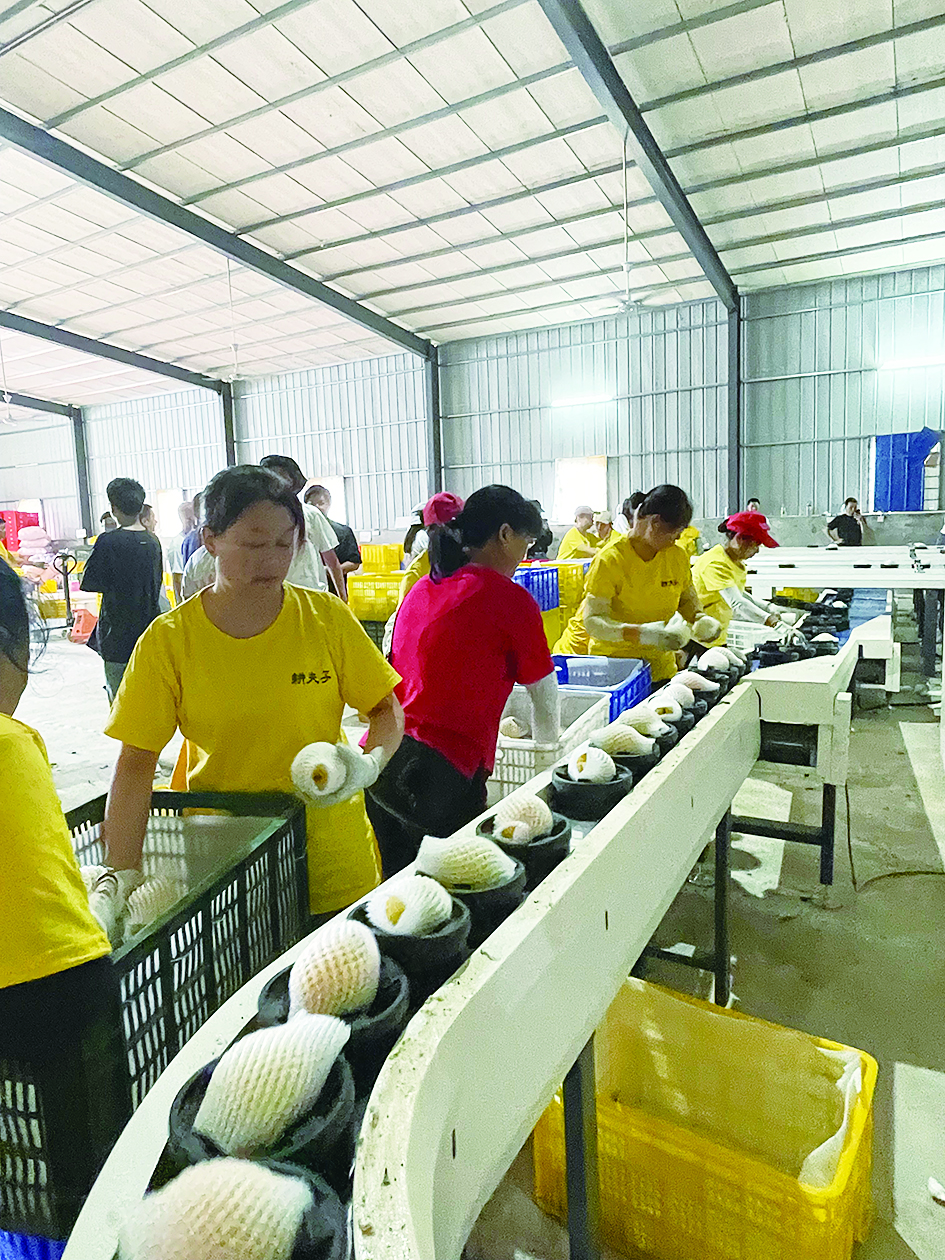 该公司负责人尹林介绍,这台智能分拣设备是公司去年引进的,通过机器视觉分析、光谱检测,智能系统能迅速对黄桃着色、形状、尺寸、重量,甚至果品糖酸度等,进行筛选分级,平均1分钟能分拣3只黄桃,又快又准又好。
