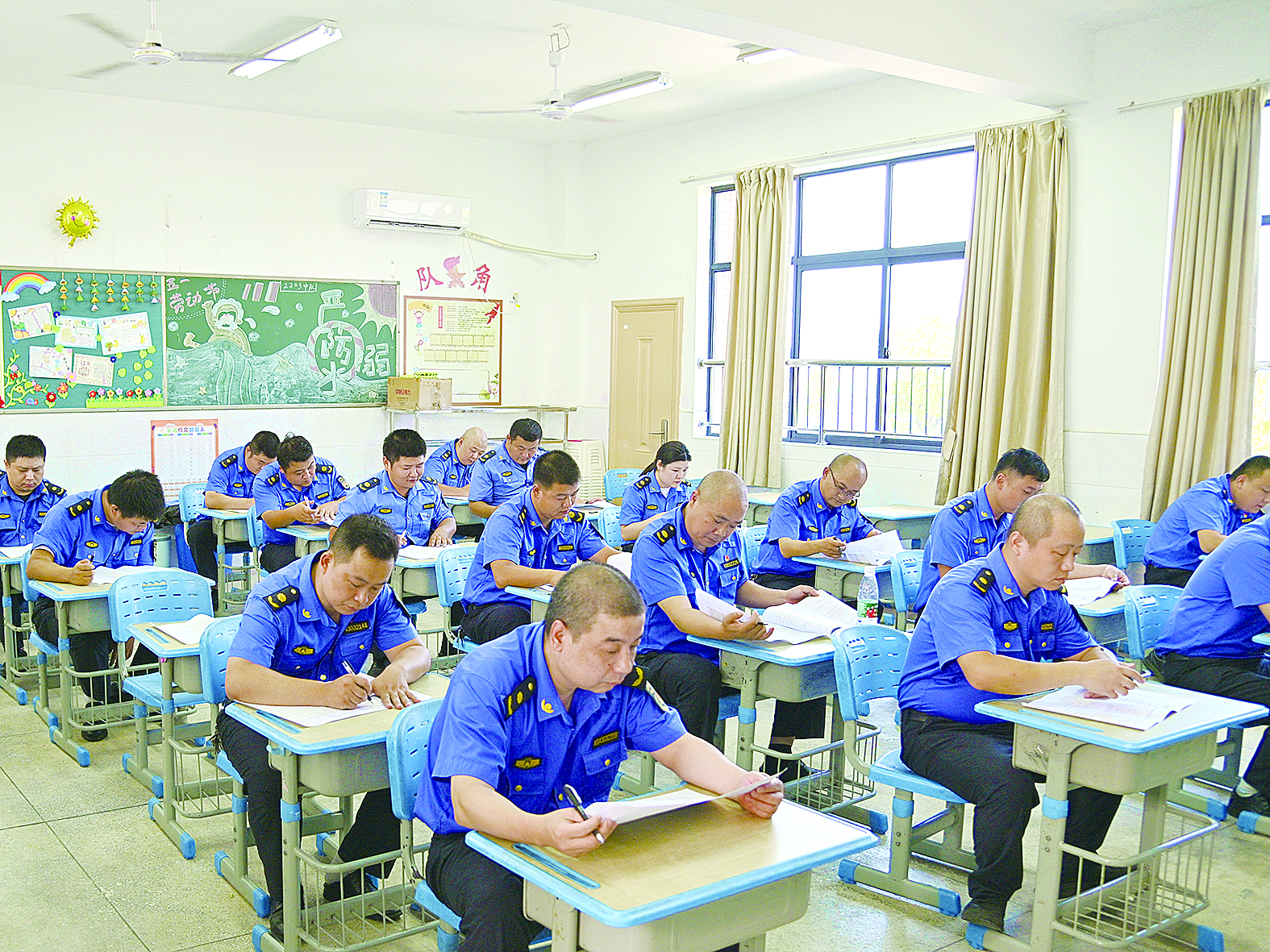 考场上,城管队员认真答题。 记者/张诗慧 摄