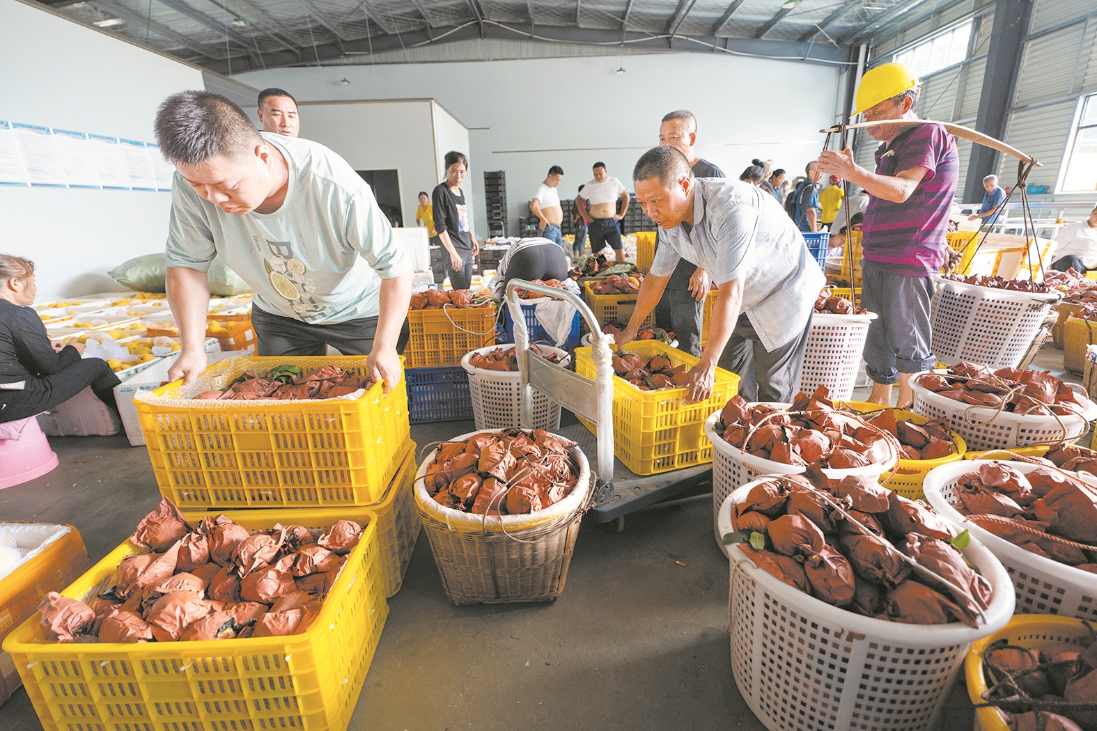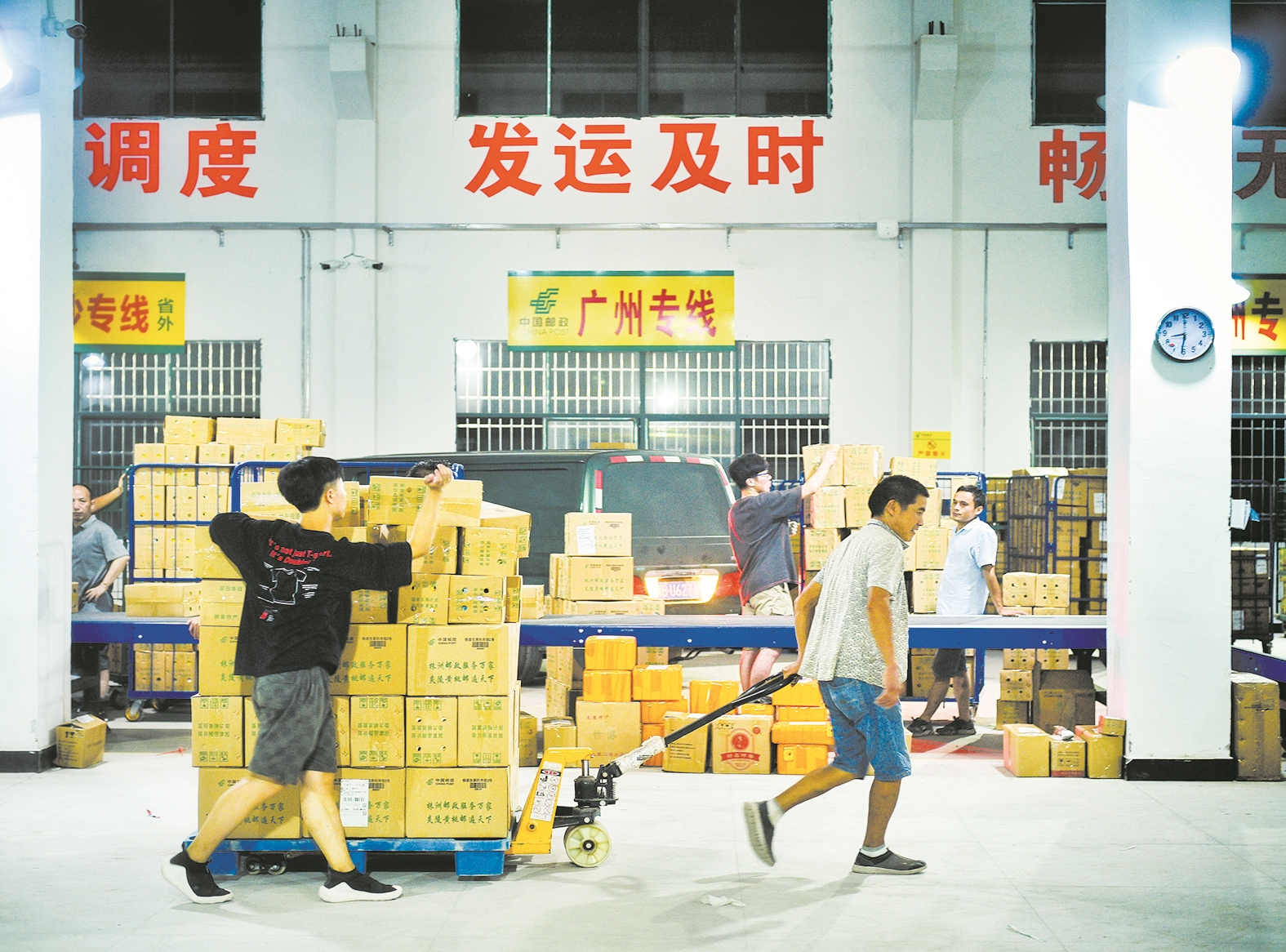 打包好的黄桃通过物流中心运往外地。 炎陵县委宣传部供图