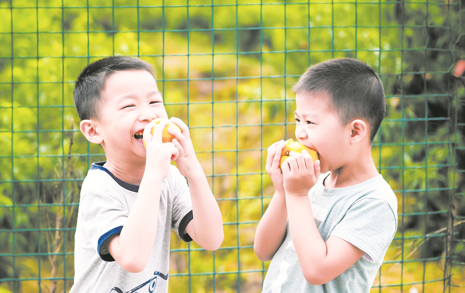 孩子们在品尝甘甜可口的黄桃。 炎陵县委宣传部供图