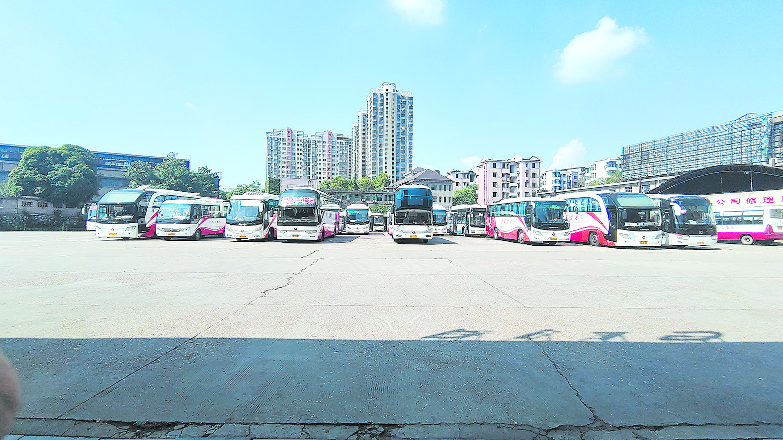 ▲汽车中心站摆放着很多停开的客运车辆。