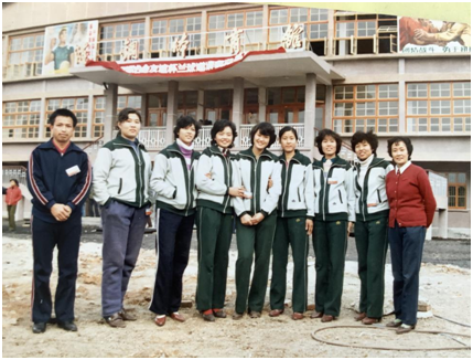 ▲1985年,荣获“湖南省冶金杯友谊赛”的选矿厂女子篮球队合影,左一为指导教练张衡生。