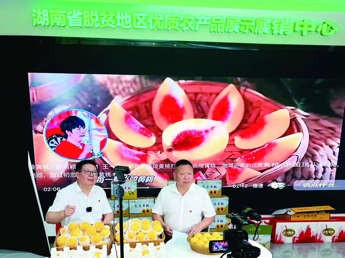 “炎陵黄桃,桃醉天下,不尝一口,枉过今夏……”近日,湖南省脱贫地区优质农产品展示展销中心直播间内,两位中年男士在手机屏幕前妙语连珠,卖力带货。一位是株洲市物业管理协会会长马文新,另一位是张家界市物业管理协会书记覃伟。