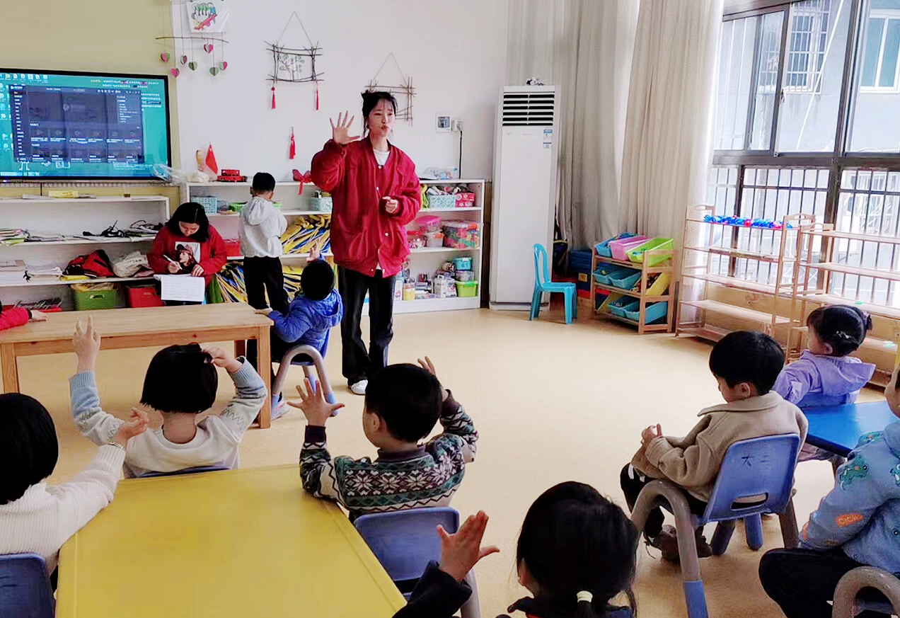 茶陵县职业中专的学生进幼儿园开展专业见习。 受访单位供图