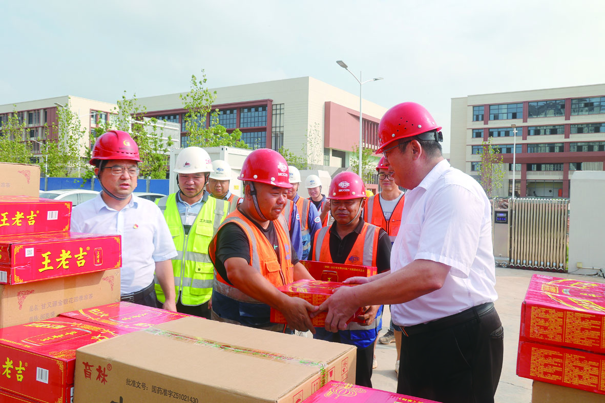 8月9日上午,九郎山集团、国盛融城公司相关负责人深入施工现场调研云龙区内重点项目建设情况,开展“夏日送清凉,深入调研促攻坚”慰问活动暨国盛融城党支部主题党日活动,为奋战在建设工地一线的工人送去防暑降温慰问品,进一步凝聚团队士气,助力现场施工生产。