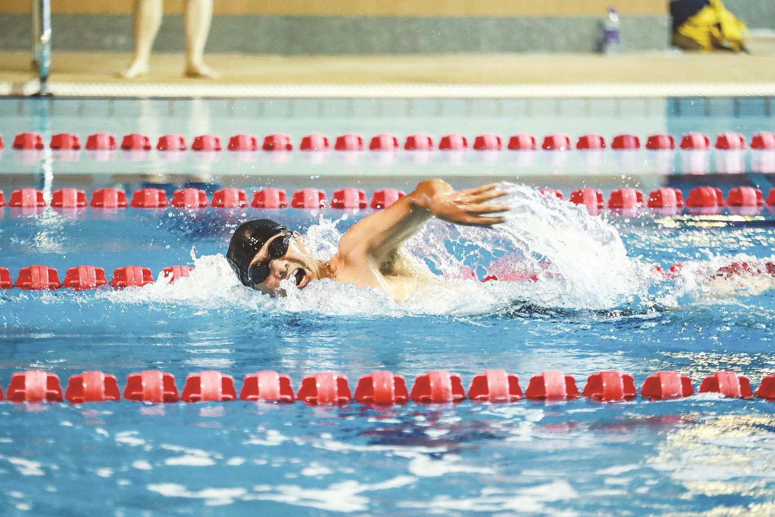 职工游泳比赛现场。 记者/何春林 摄