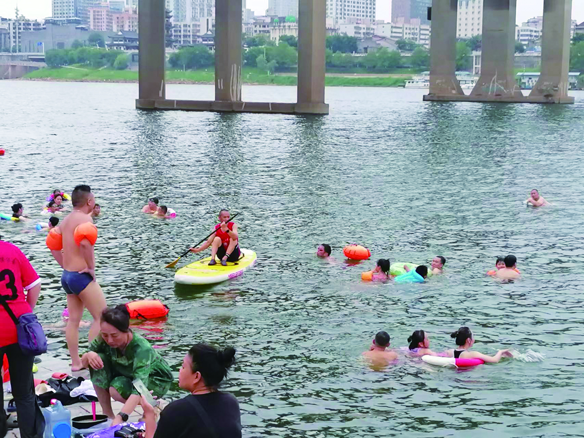河西四桥下,野泳者集中。 记者/姚时美 摄