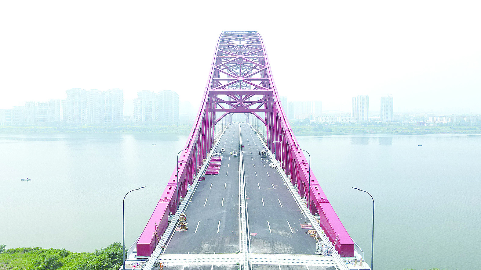 清水塘大桥桥面完工,具备通车条件。 记者/张威 摄