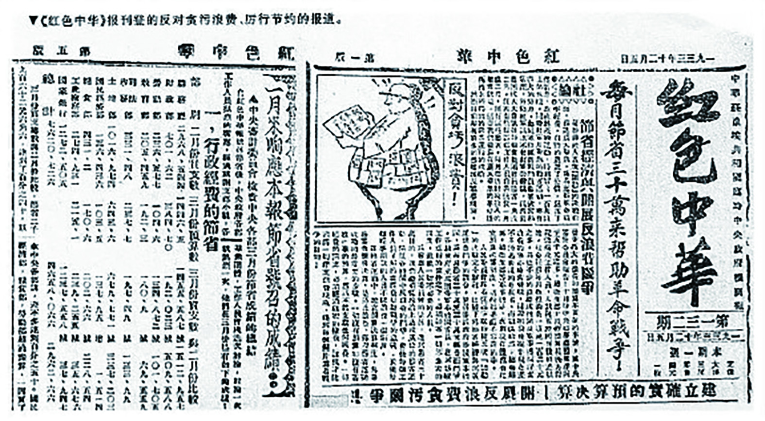 《红色中华》报刊登的反对贪污浪费、厉行节约的报道
