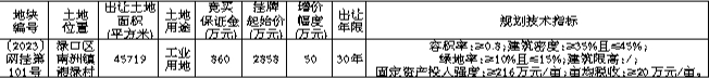 3.该宗地以标准地供地,固定资产投入强度≥216万元/亩、亩均收入≥320万元/亩、亩均税收≥20万元/亩。
