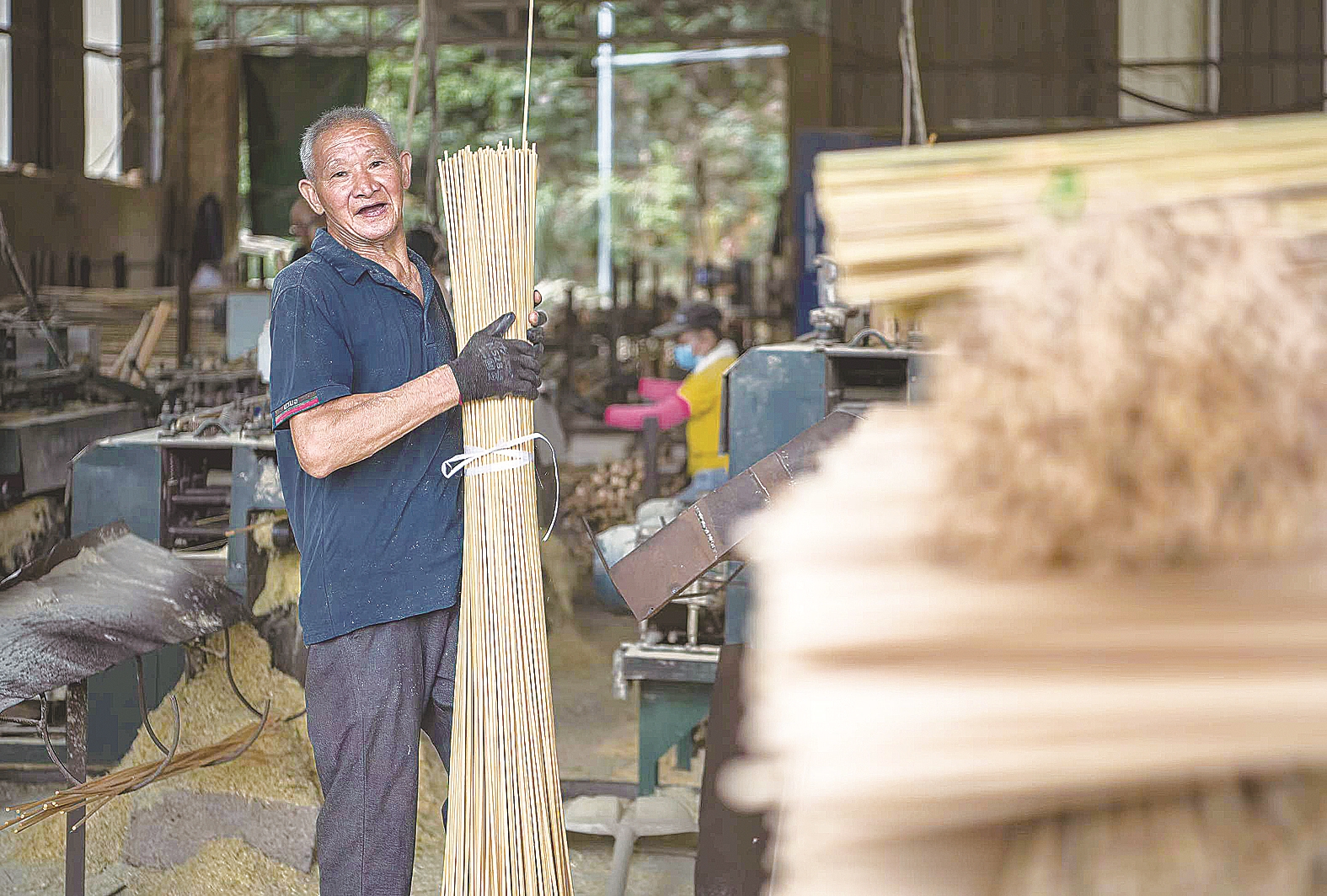 八斗的竹器厂,老人每月收入 1500元左右。梁国柱 摄