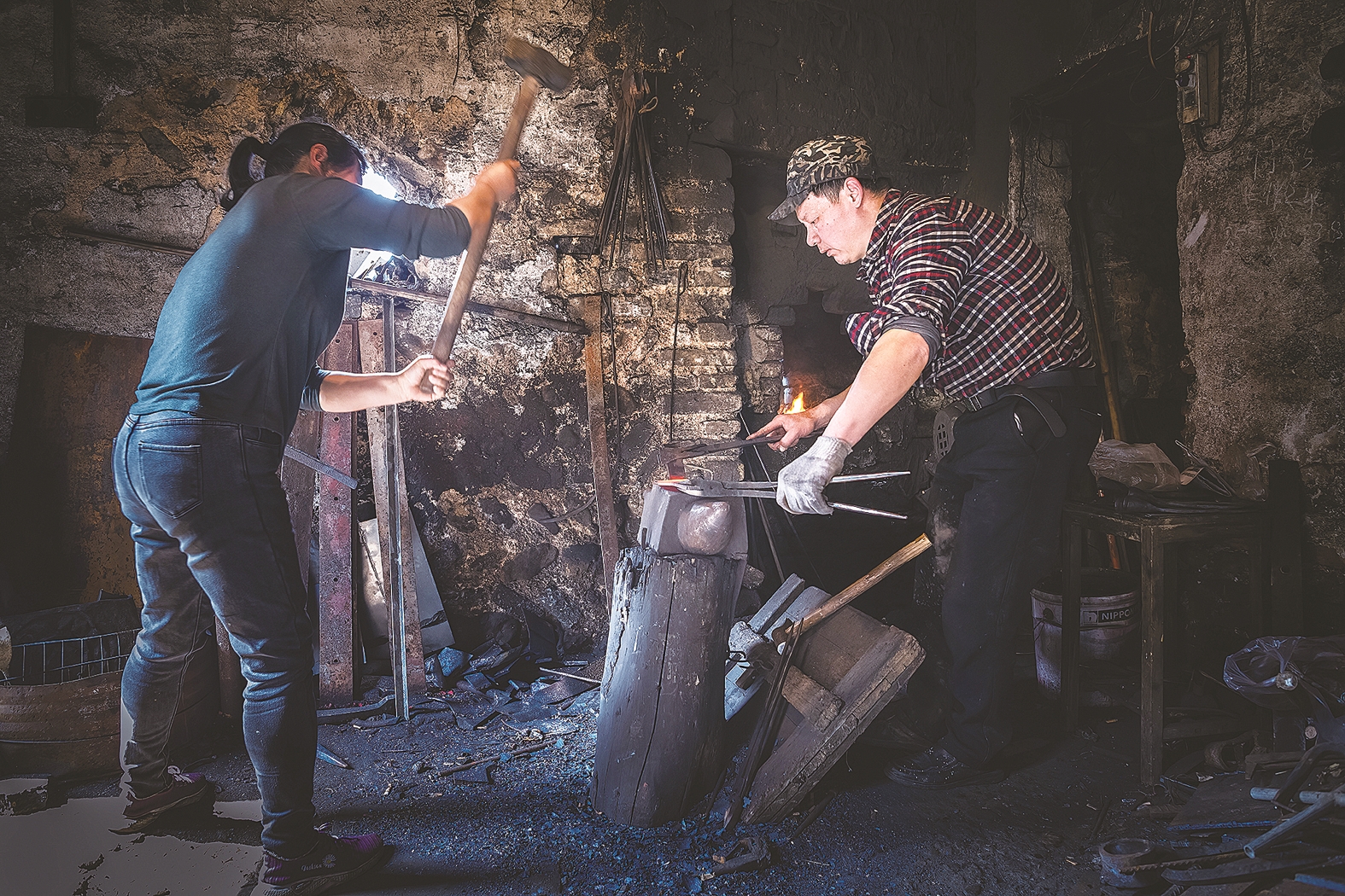 94年便在淦田渡口开铁铺谋生的夫妇。咏洲 摄