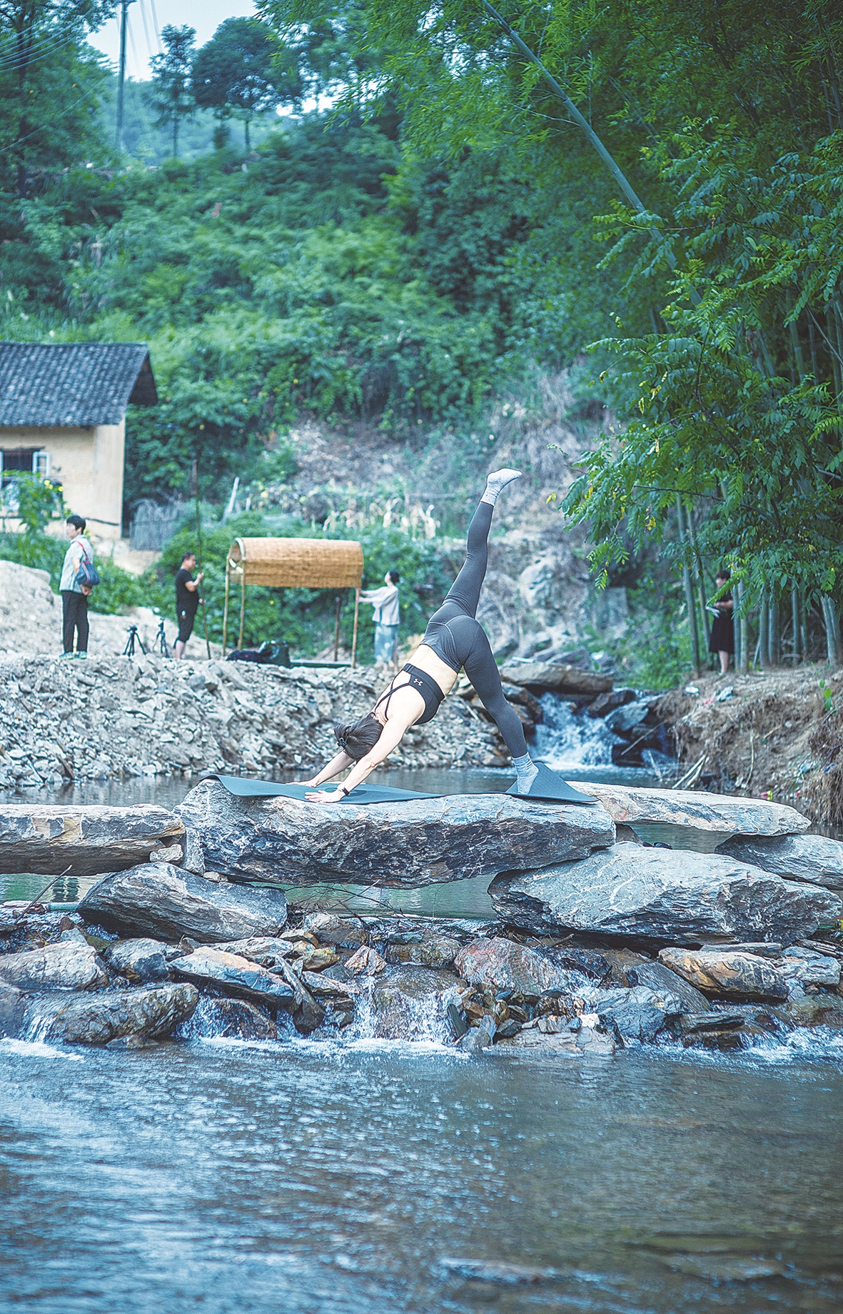 在淦田港即兴而为的瑜伽练习者。彭雪飞 摄