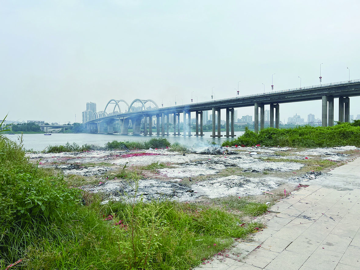 中元节临近,湘江边的祭扫活动多了起来。8月21日(农历七月初六),城区湘江风光带多处留有祭扫活动产生的痕迹。有些市民自觉前往位于芦淞大桥附近的祭祀平台开展祭扫活动。有些祭扫活动很分散。有市民建议,在江边设集中祭扫点,摆放焚烧桶,引导祭扫市民在集中祭扫点开展祭扫活动,减少对风光带的影响和破坏。