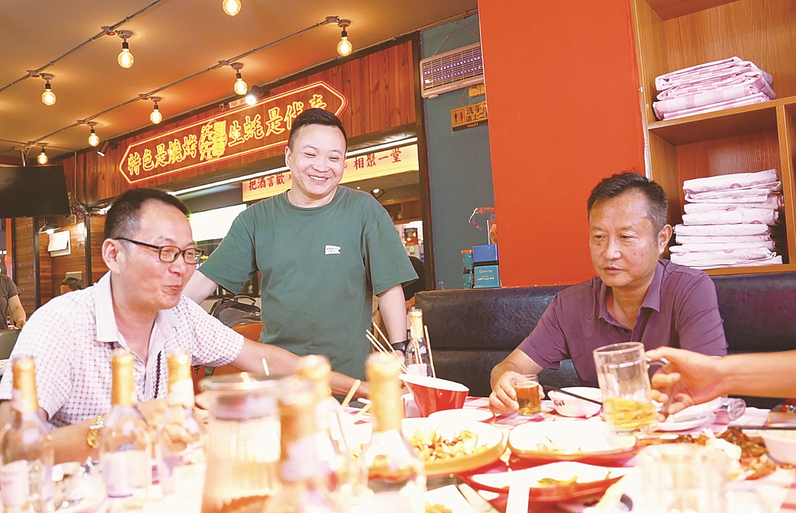 在贺家土夜宵美食街,市民在品味美食