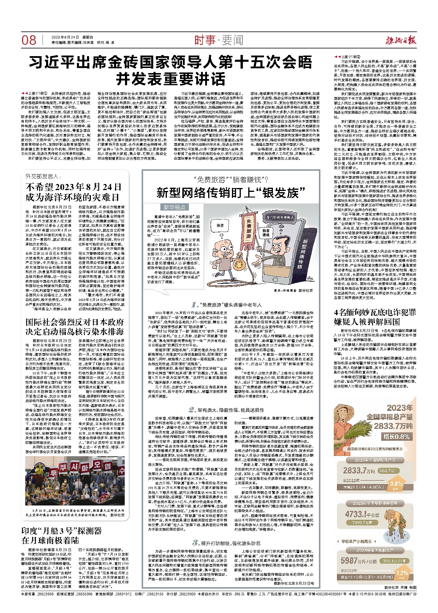 汪文斌表示,中方强烈敦促日方撤销错误决定,停止强推核污染水排海计划,以真诚态度同周边邻国善意沟通,以负责任方式加以处置,避免对全球海洋环境造成不可预测的破坏和危害。“如果日方坚持强推排海计划,中国政府将采取必要措施,坚定维护海洋环境、食品安全和公众健康。”