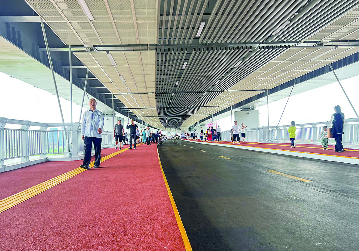 图为市民步行通过清水塘大桥。 株洲日报全媒体记者 /胡兴鑫 摄