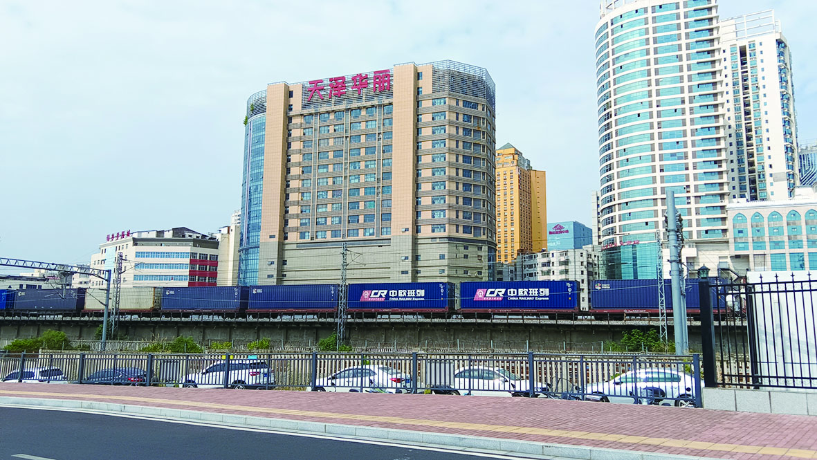 7月17日,一趟中欧班列正开行经过株洲芦淞市场群。 株洲日报全媒体记者/李支国 摄