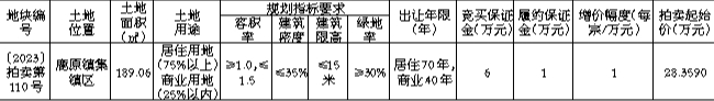 国有建设用地使用权拍卖出让公告 〔2023〕拍卖第110号