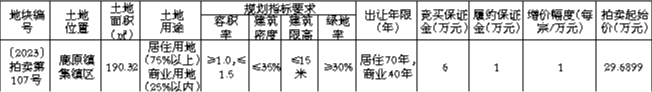 国有建设用地使用权拍卖出让公告 〔2023〕拍卖第107号