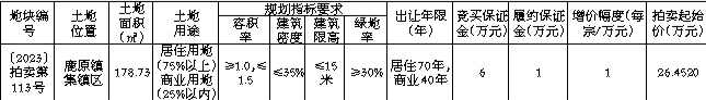 国有建设用地使用权拍卖出让公告 〔2023〕拍卖第113号