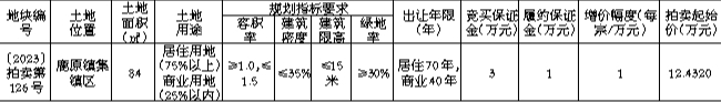 国有建设用地使用权拍卖出让公告 〔2023〕拍卖第126号
