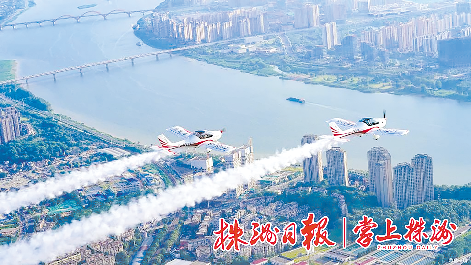 ▼2021年,湖南航展。山河阿若拉飞机在株洲芦淞机场表演后,途经湘潭到长沙,为三地市民飞行表演。