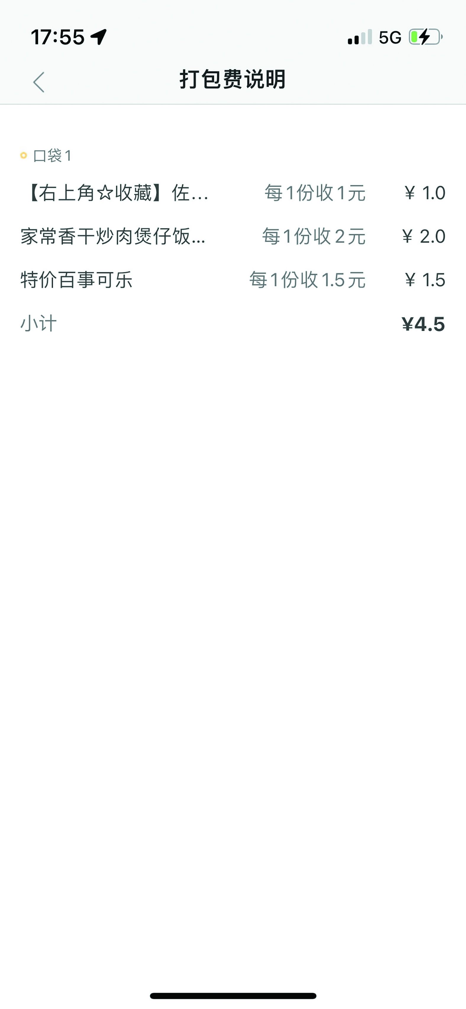 “如果真的给了独立包装,那倒也无可厚非。但是一些明显都无法打包、不需要打包的东西也要额外收打包费,这吃相也太难看了。我平时每次点餐的时候都会加一瓶可乐,我刚查看了今年以来的外卖消费记录,其中仅仅是可乐的打包费就已经达到了近百元。我真的无法接受这样的事实。”市民孙先生说。