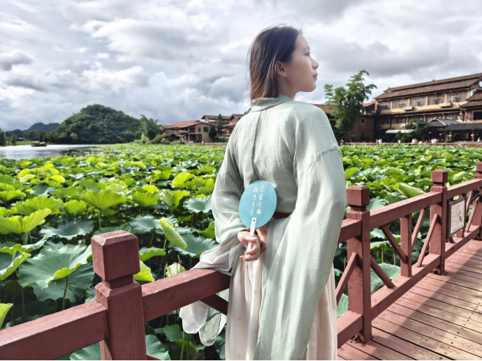 人物:千金药业财务部吕天晴 地点:云南省文山壮族苗族自治州丘北县普者黑 感受:青山俊秀,水光涟涟,清风拂面,荷叶莲田,鱼戏于叶间,我漫步于木桥,悠然自得。绿水、青山是每个人的共同财富,享受闲适的假期,亦是每个人的福气。