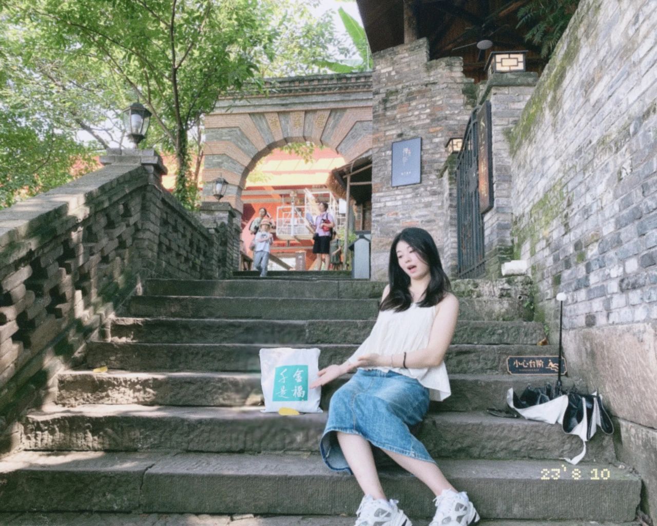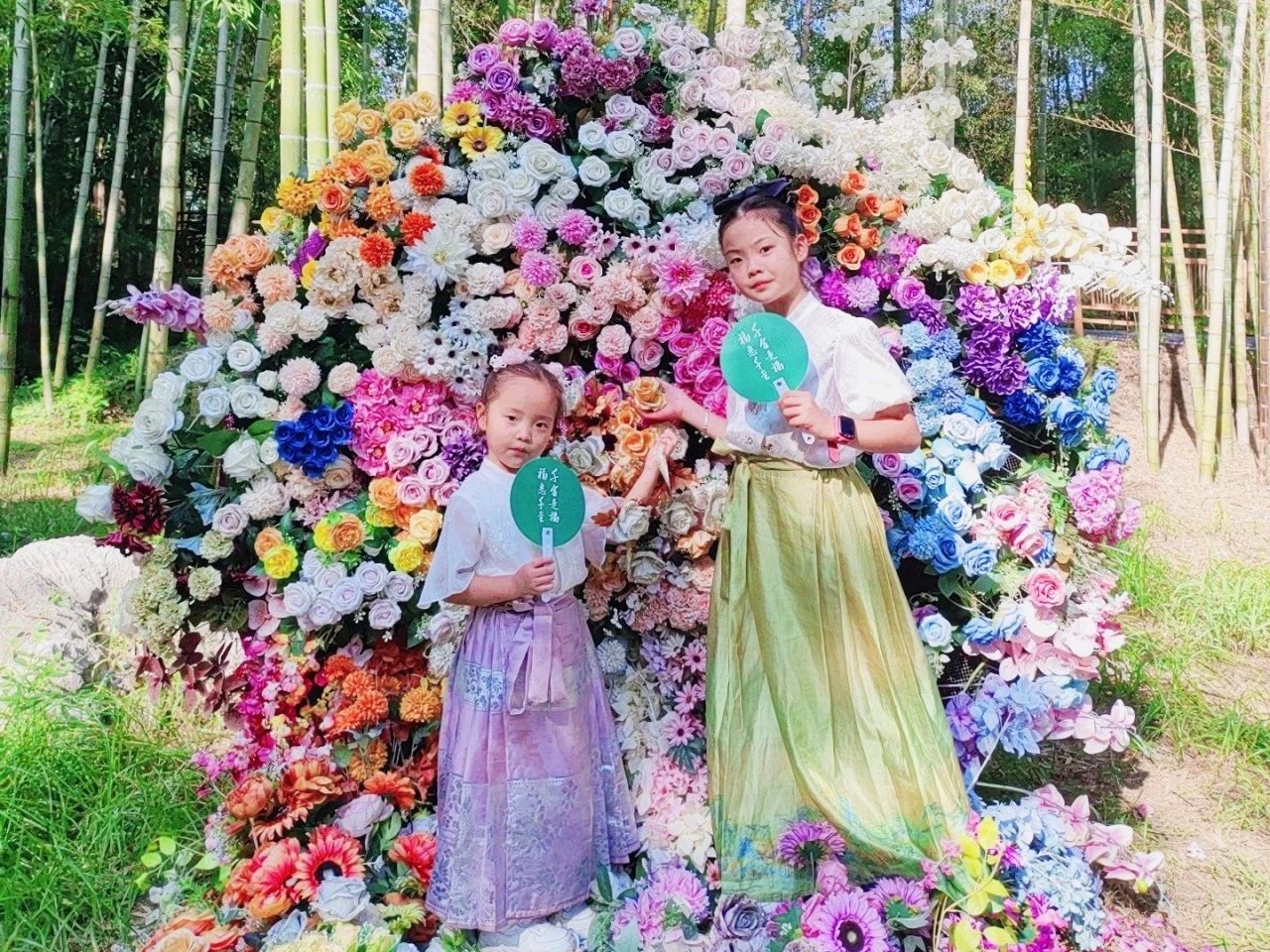 人物:千金药业河西制剂车间邓海丽女儿 地点:杭州灵山仙桥洞 感受:孩子们在杭州穿着汉服,拿着千金是福的扇子边走边拍,尽览美景,感受诗情画意。快乐又甜蜜!