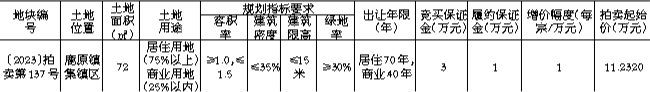 国有建设用地使用权拍卖出让公告 〔2023〕拍卖第137号