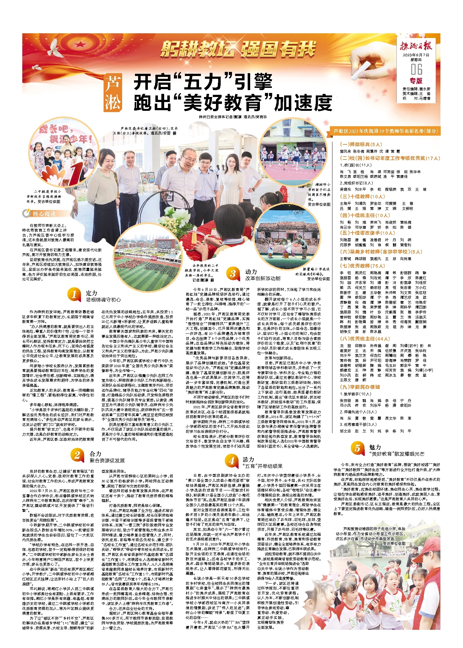 芦淞开启“五力”引擎 跑出“美好教育”加速度