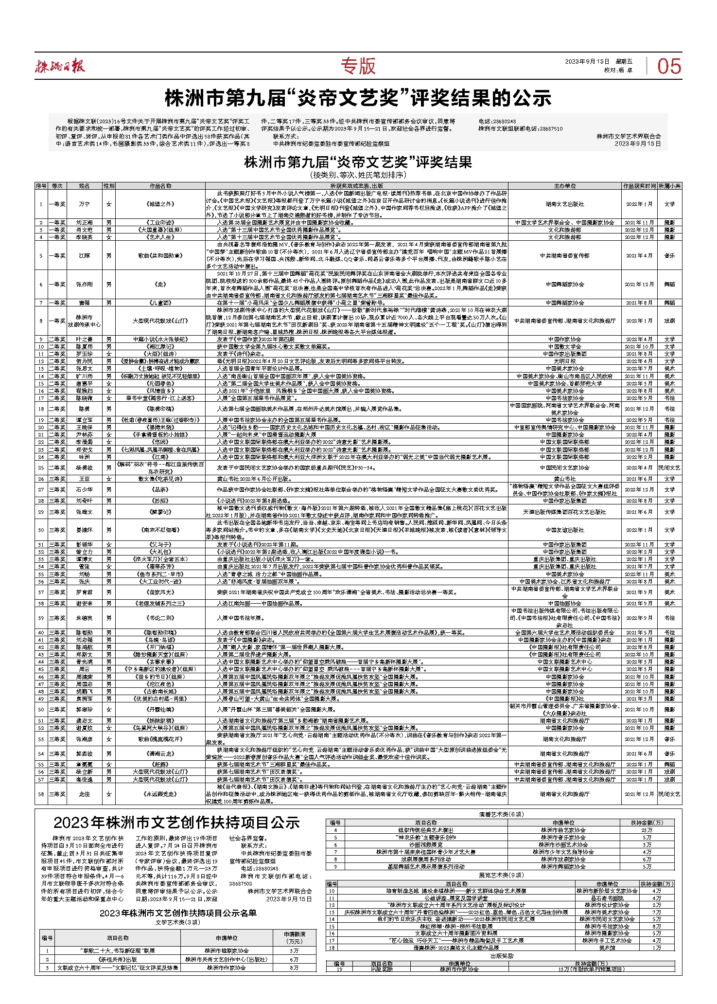 株洲市第九届“炎帝文艺奖”评奖结果的公示
