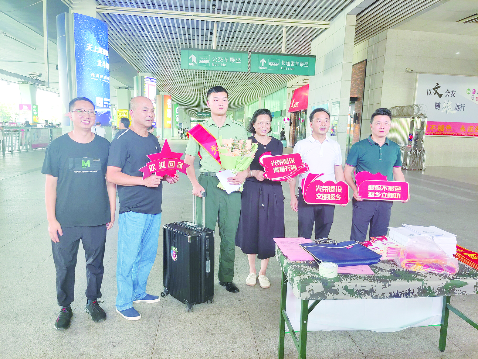 株洲日报讯(全媒体记者/廖智勇 通讯员/康爱青) 近日,市退役军人事务局牵头株洲军分区、天元区退役军人事务局、天元区武装部等单位在株洲西站设立“退役军人光荣返乡接待站”,欢迎株洲籍退役士兵荣归。