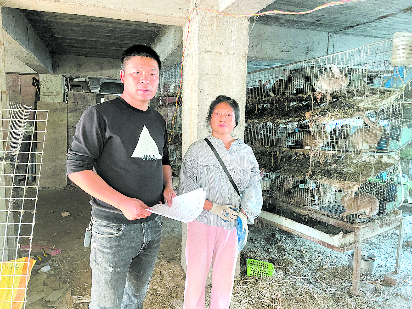 叶贞安(左)在走访村里的脱贫户。(受访者供图)