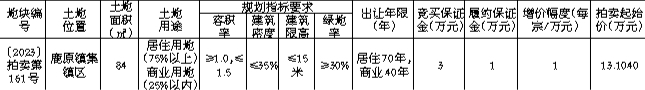 国有建设用地使用权拍卖出让公告 〔2023〕拍卖第161号