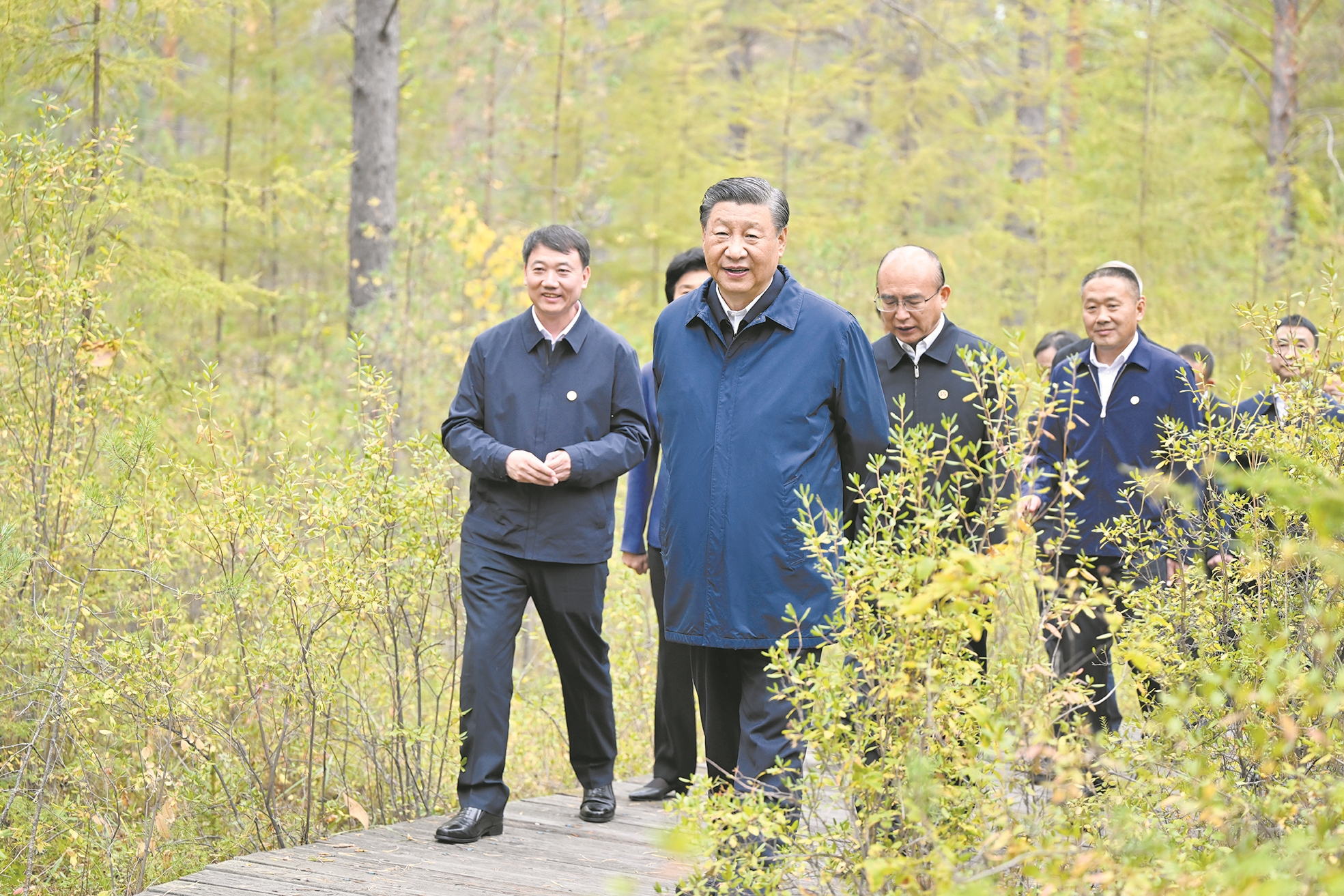 9月6日至8日,中共中央总书记、国家主席、中央军委主席习近平在黑龙江考察。这是6日下午,习近平在大兴安岭地区漠河市漠河林场自然林区考察。 新华社记者 殷博古 摄