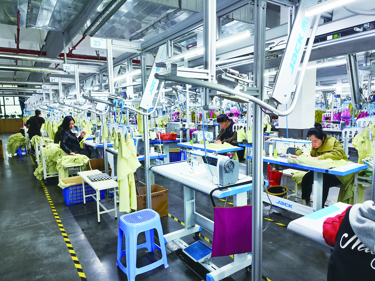 园区一天可生产4000件成衣。除生产便捷外,全智能生产还能全程记录每一件服装的生产数据,便于生产管理。比起传统的制造方式,这样的全智能制造让生产效率提升了35%。